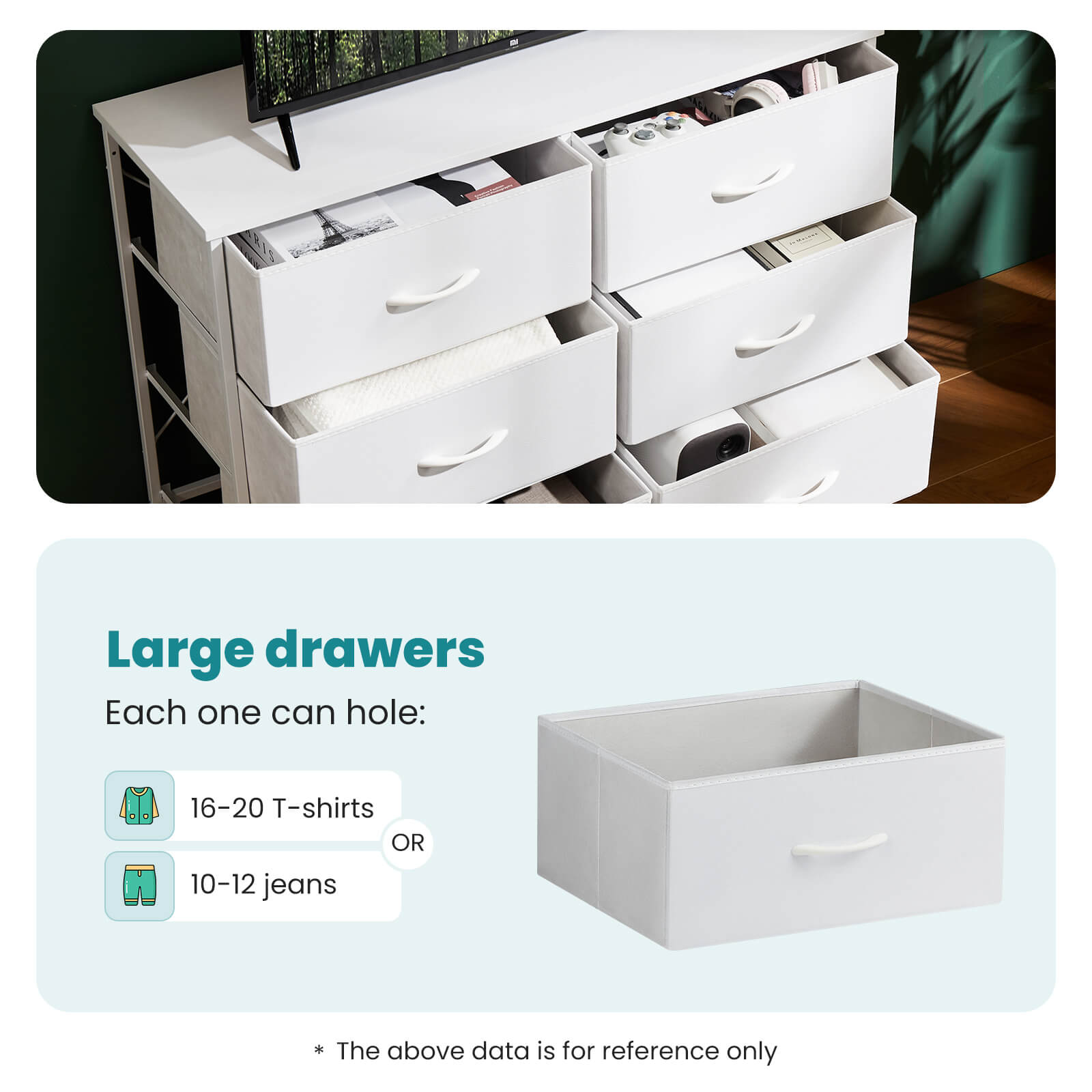 Dresser TV Stand, Console Table with 6 Wide Drawers, Entertainment Center for 55" TV Storage Fabric Dresser Drawer