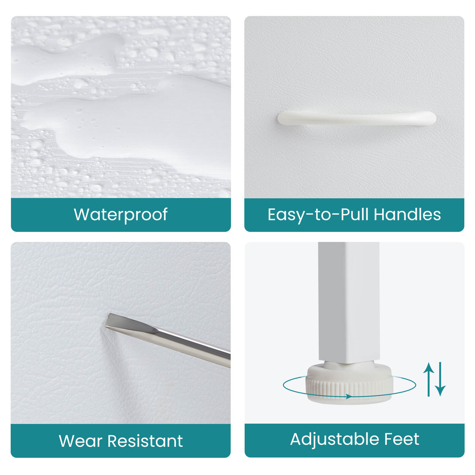 - Sturdy Frame: The high-quality metal frame extends the life of the chest of drawers while keeping the chest of drawers stable and sturdy at all times. With 4 height-adjustable feet to protect your floor from scratches, you can also adjust the balance of the chest of drawers in small areas. In addition, we added an additional auxiliary function that is fixed against the wall. You can attach the drawer dresser to your wall to prevent possible tilting and child climbing caused by terrain.