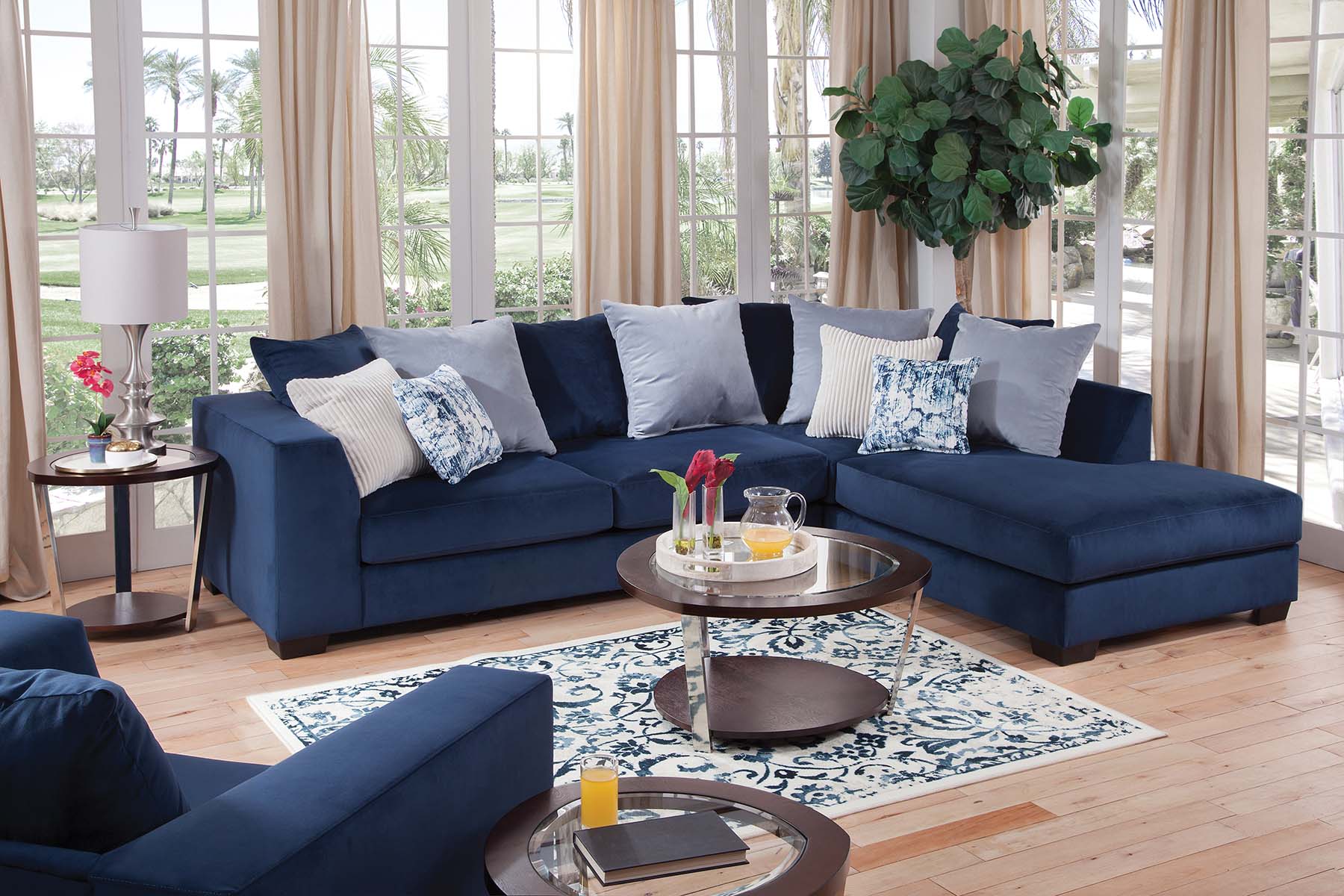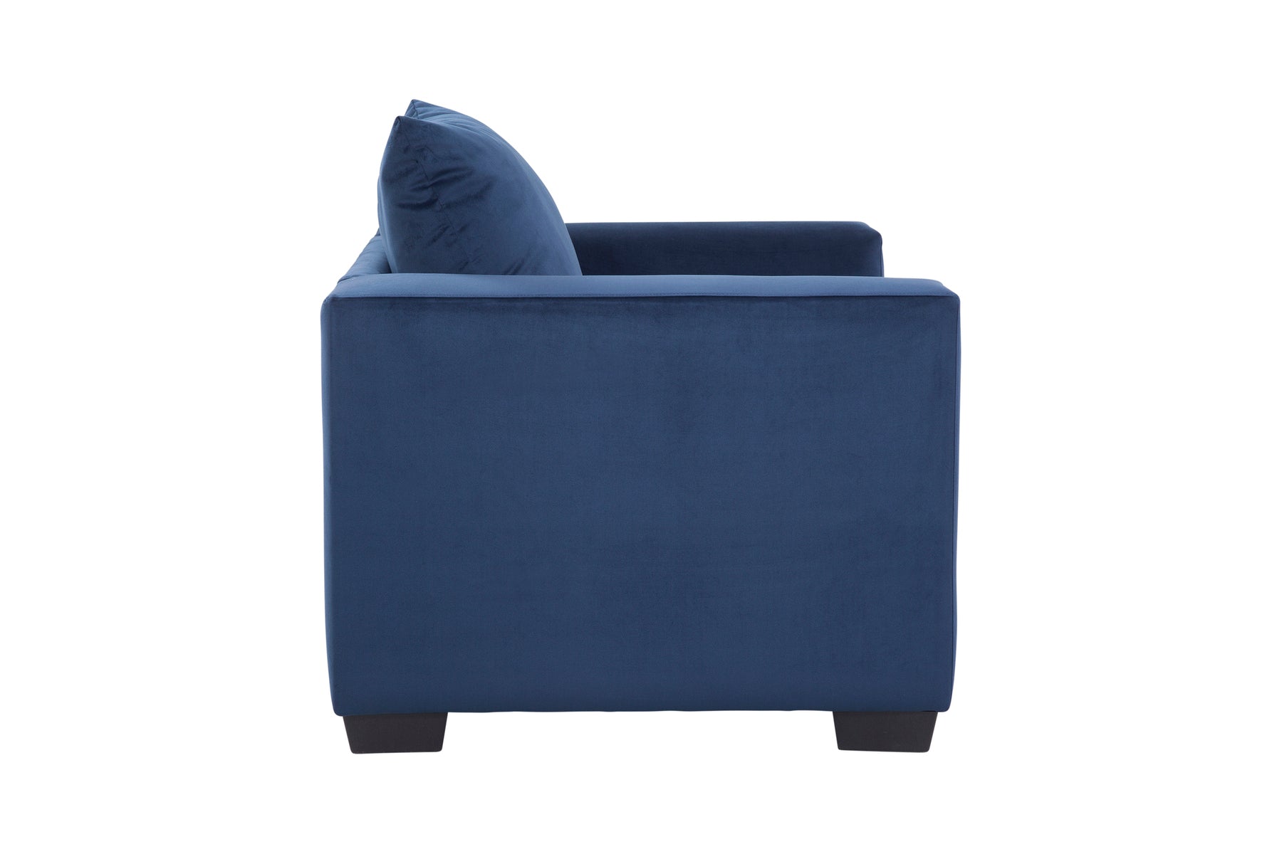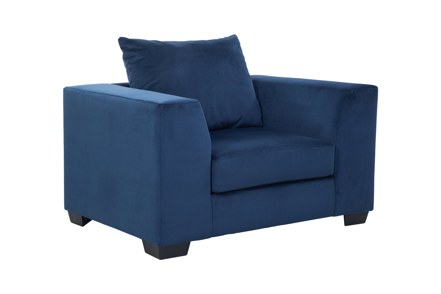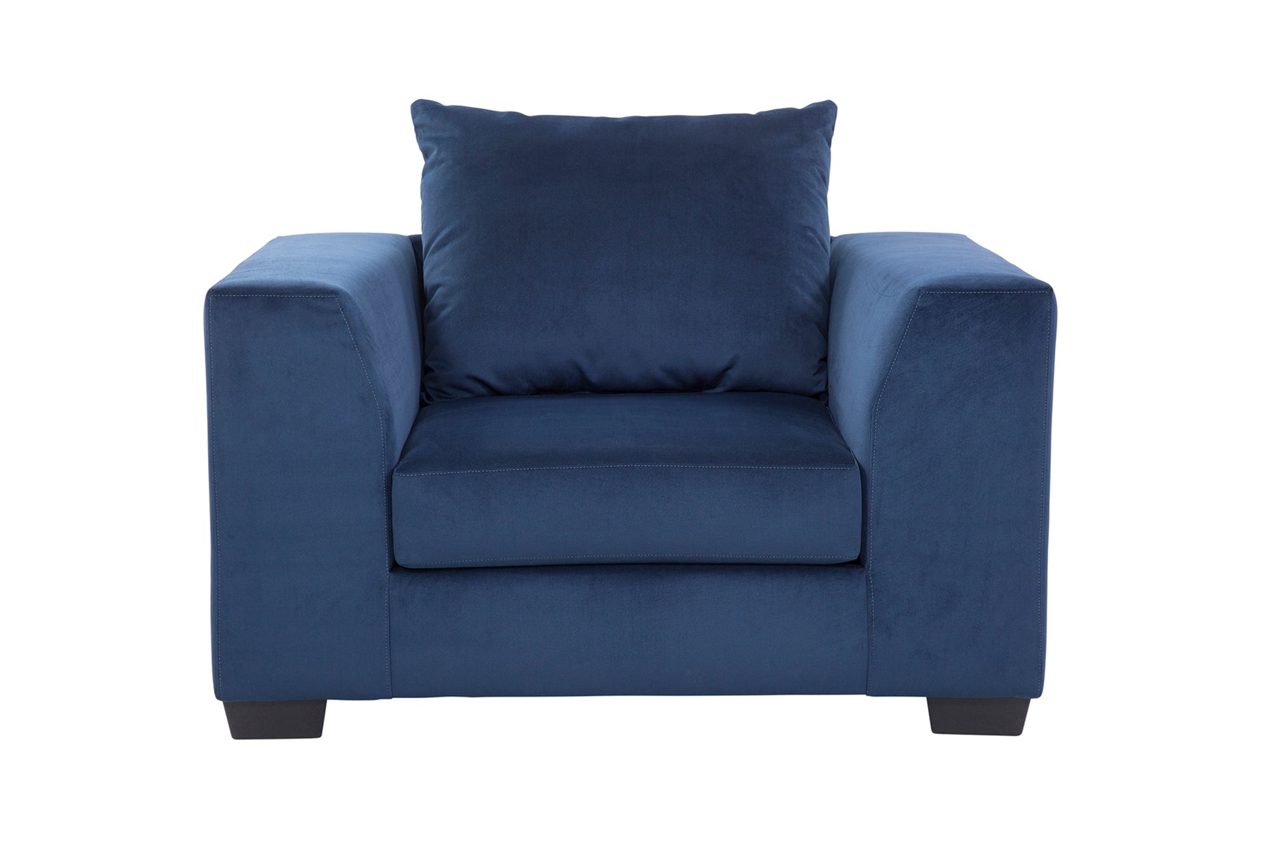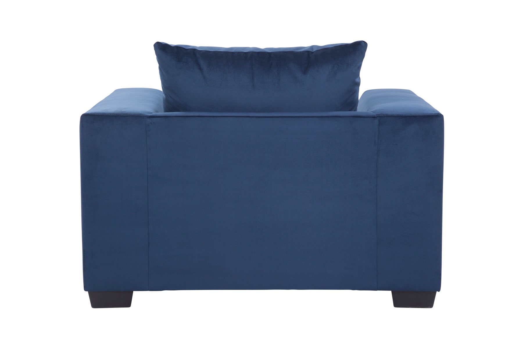 This is an oversized armchair in a blue microfiber twill. This is a non-reversible seat with a reversible back pillow. This armchair is part of our comfort casual collection. Can be paired with our matching sectional for maximum seating capacity.