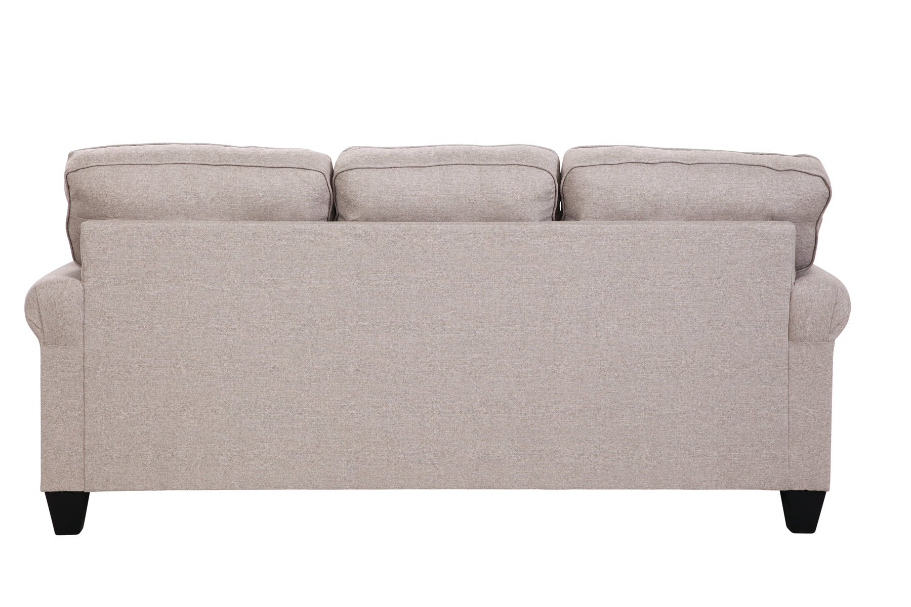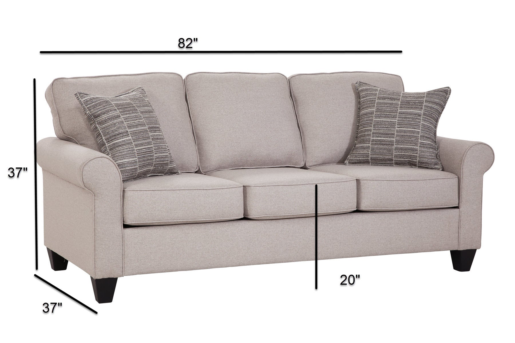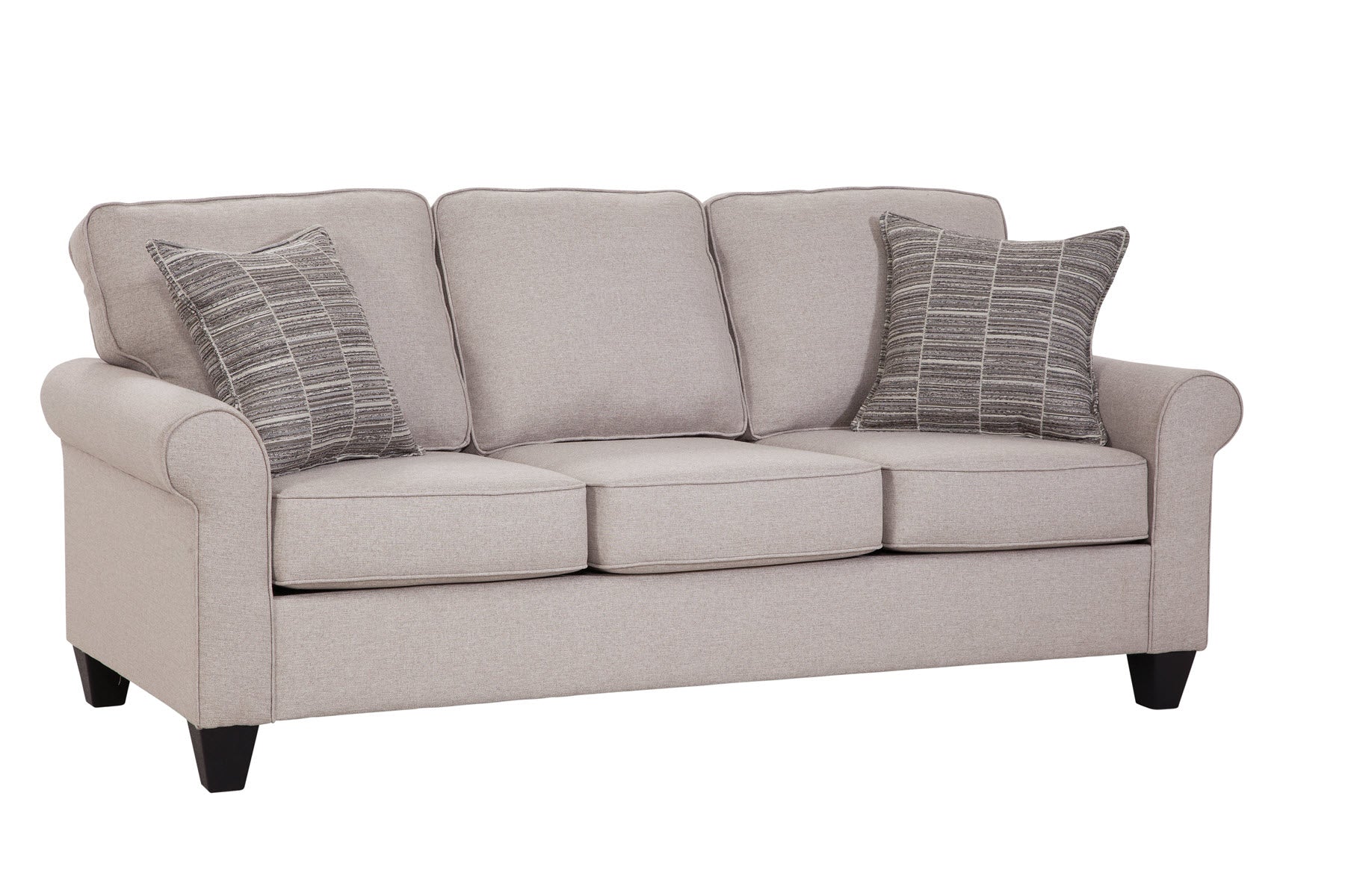 This sofa provides a clean tailored look that is perfect for any living area. The neutral fabric with matching print pillows will compliment any décor. Fine, tailored details add classic appeal to this set. This sofa has a small footprint that is perfect for a variety of living spaces while providing plenty of seating for the family. Clean edges, comfortable seating and a charming design make for a winning sofa!