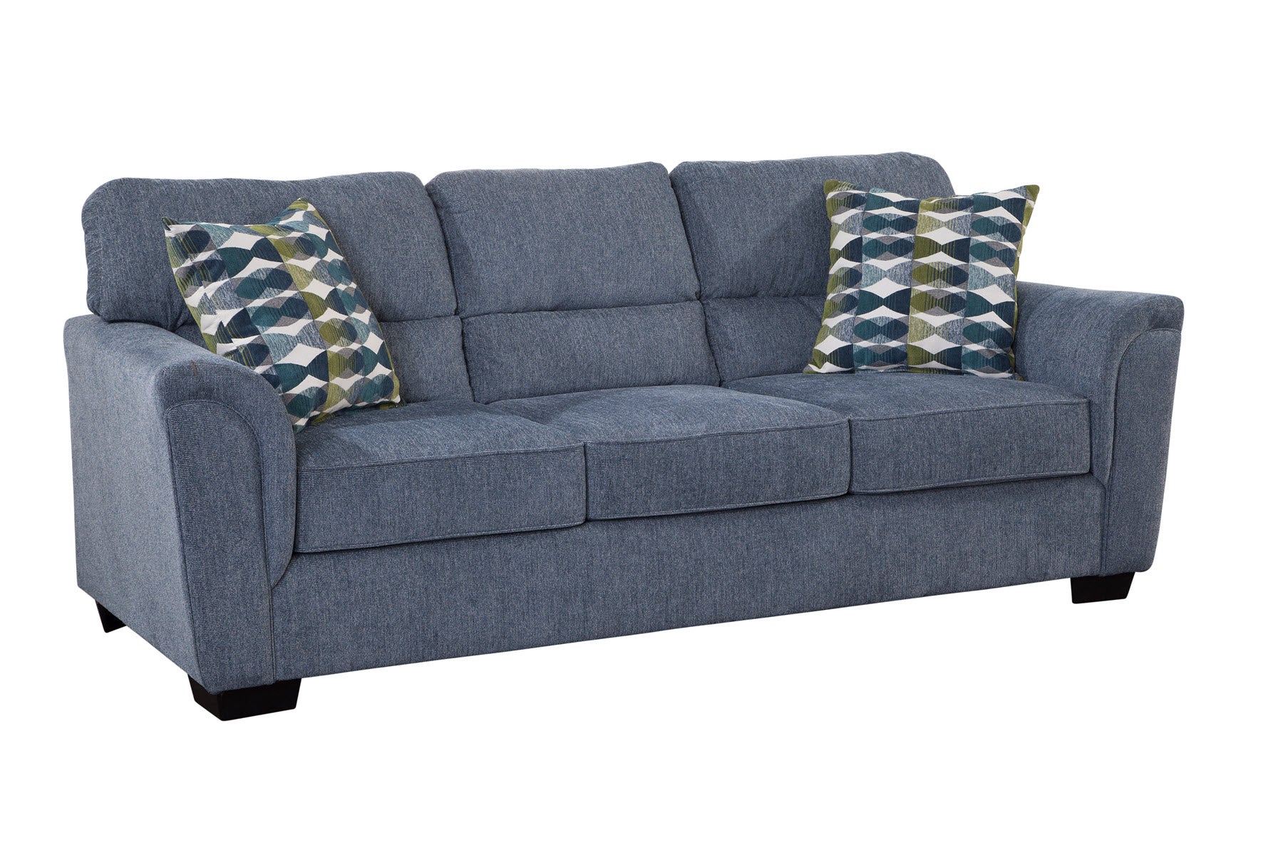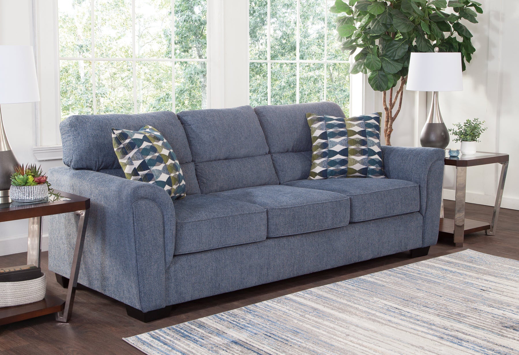This sofa provides a cozy seating solution with a compact footprint, making it suitable for almost any space. The non-reversible seat and back cushions offer support, and high-density foam ensures long-lasting durability and comfort. A padded roll arm adds both style and comfort, making this sofa an ideal choice for any room. Manufactured in the USA, it comfortably seats up to three people, perfect for small-space living.