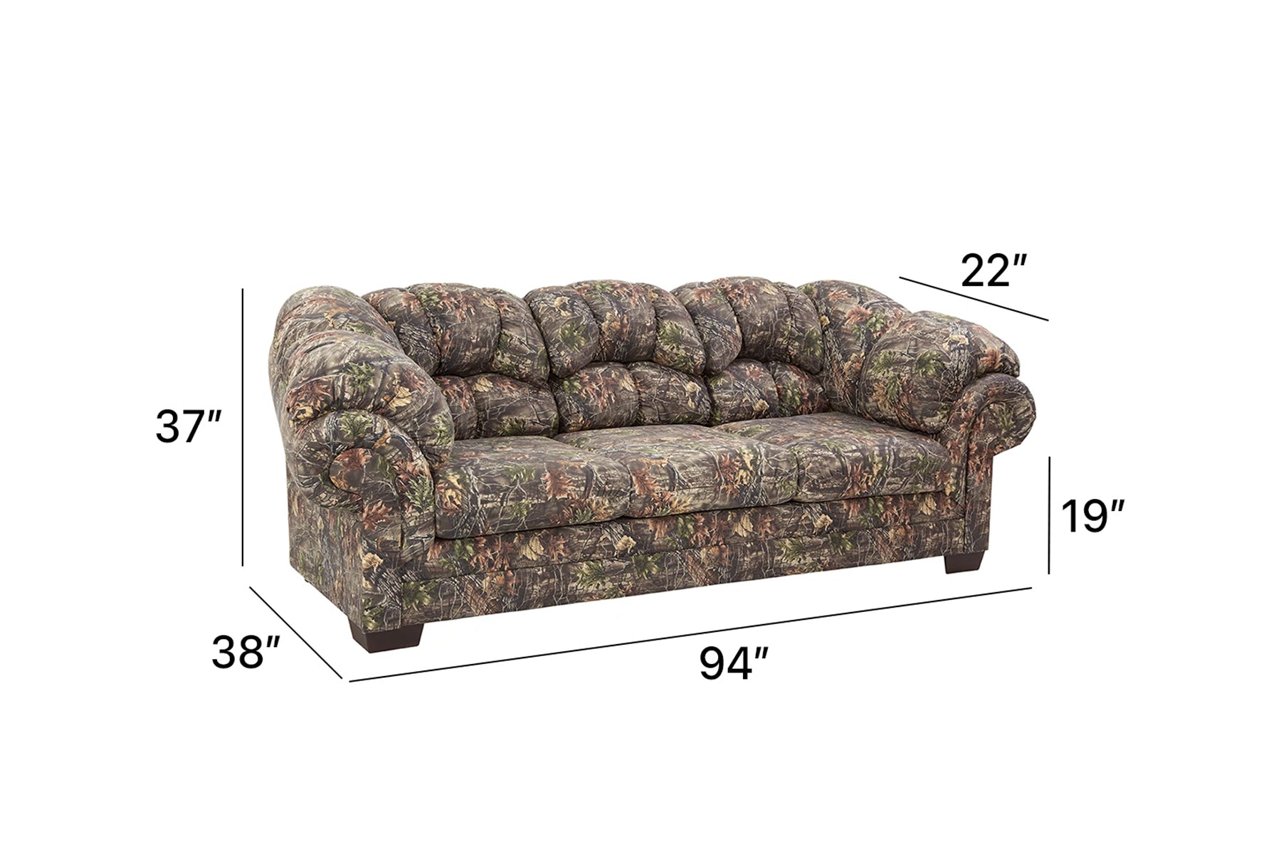 This furniture set has padded arms and fiber-filled back which offer great support and comfort. This set offers an over-stuffed appearance with cushions consisting of high-density foam for durability and comfort. All while providing the camo pattern you want from your furniture.
