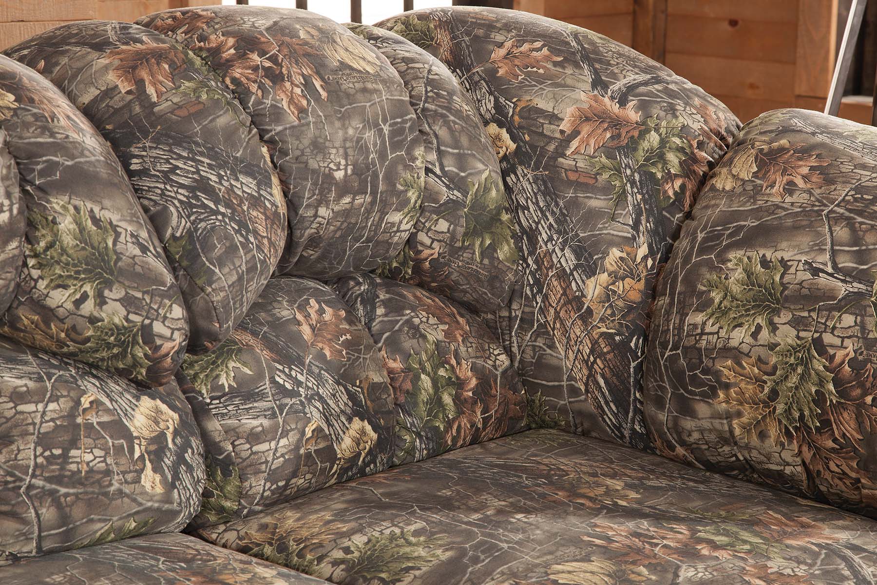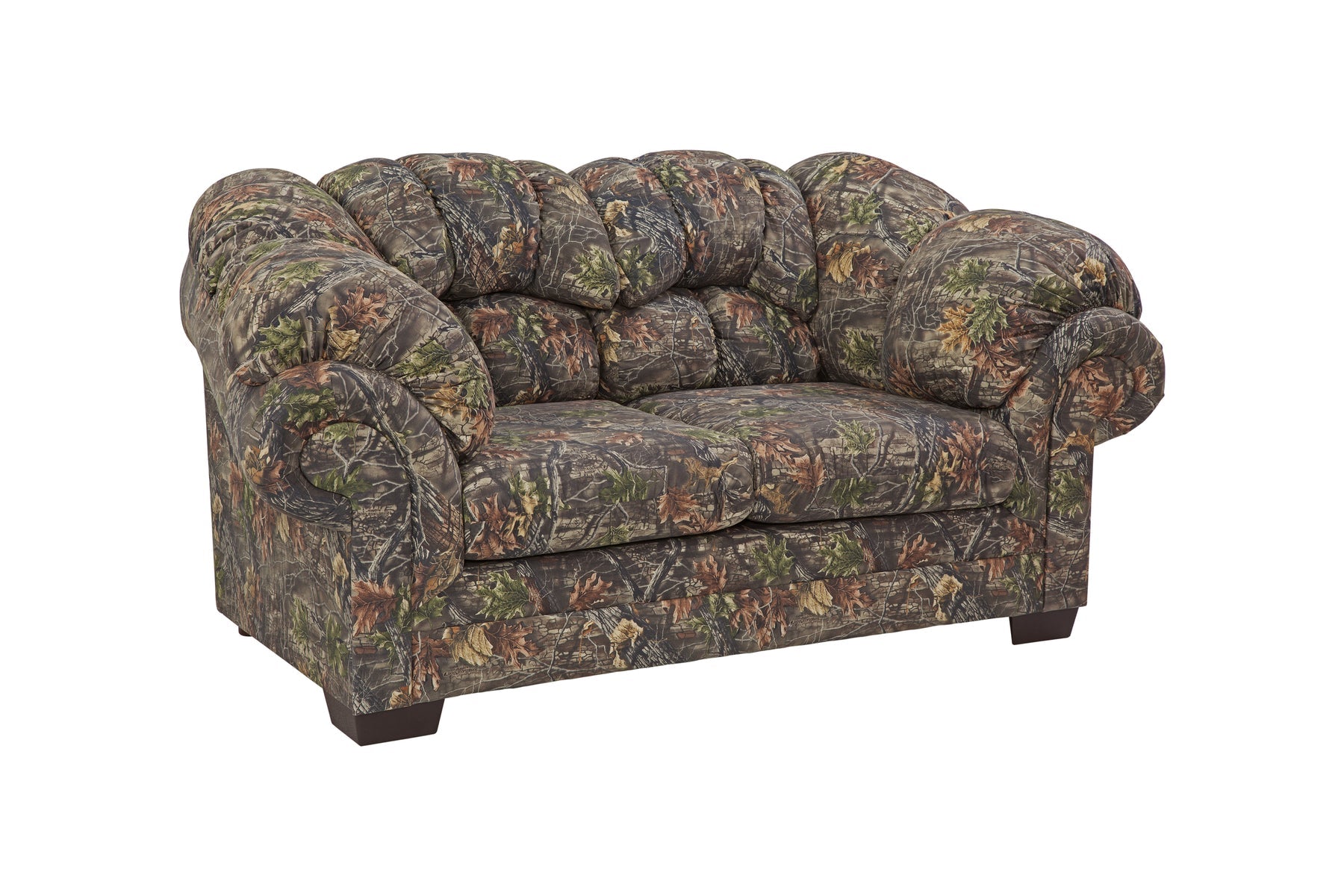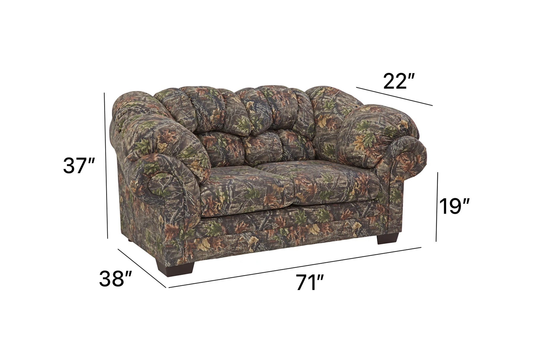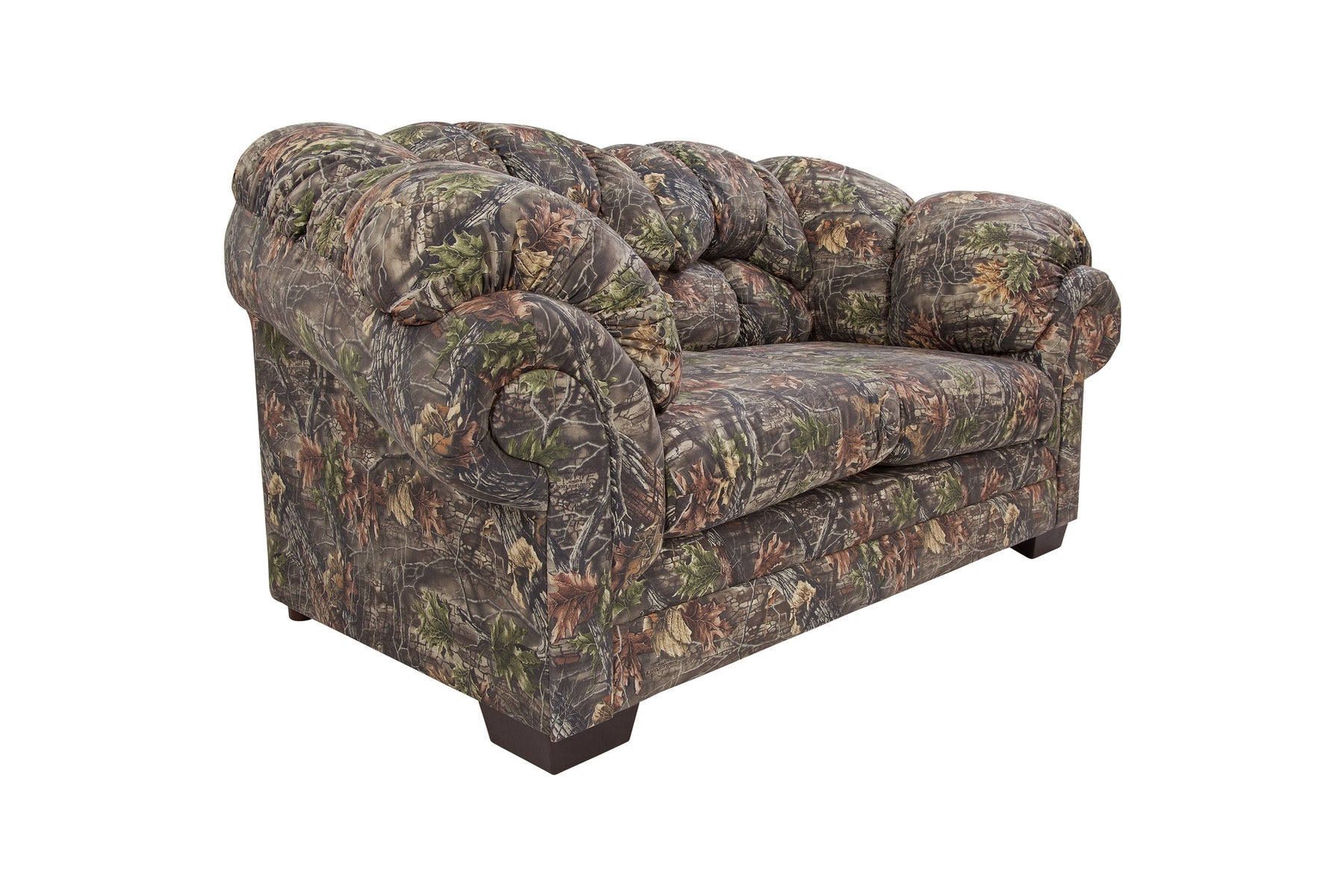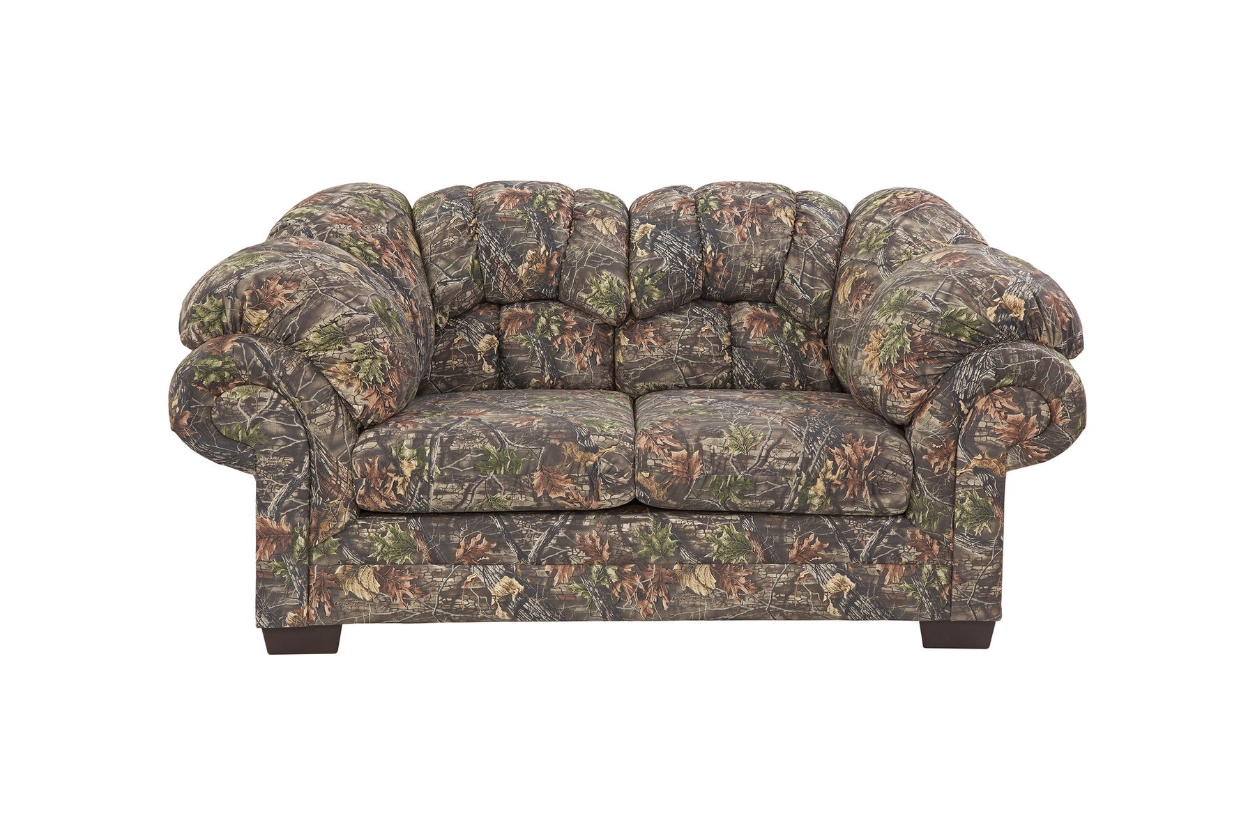 Embody your love for the outdoors with this everyday camo loveseat from Woodhaven Furniture. The padded arms and fiber filled back provides substantial support and long-lasting comfort. This loveseat is your retreat from the great outdoors or after a long day at work.