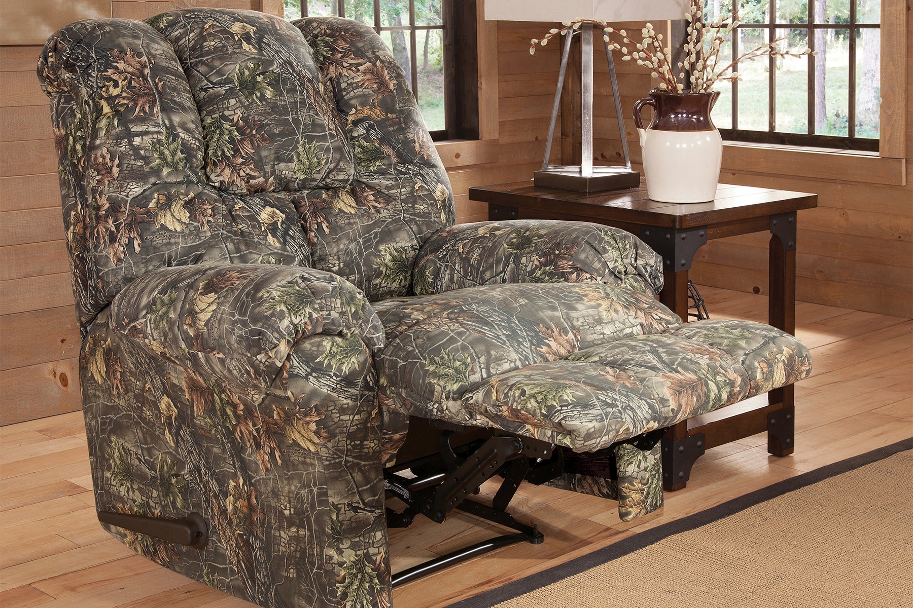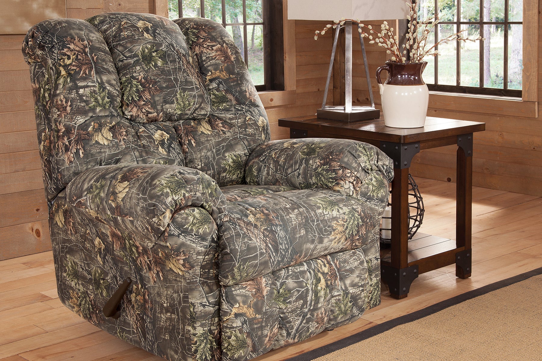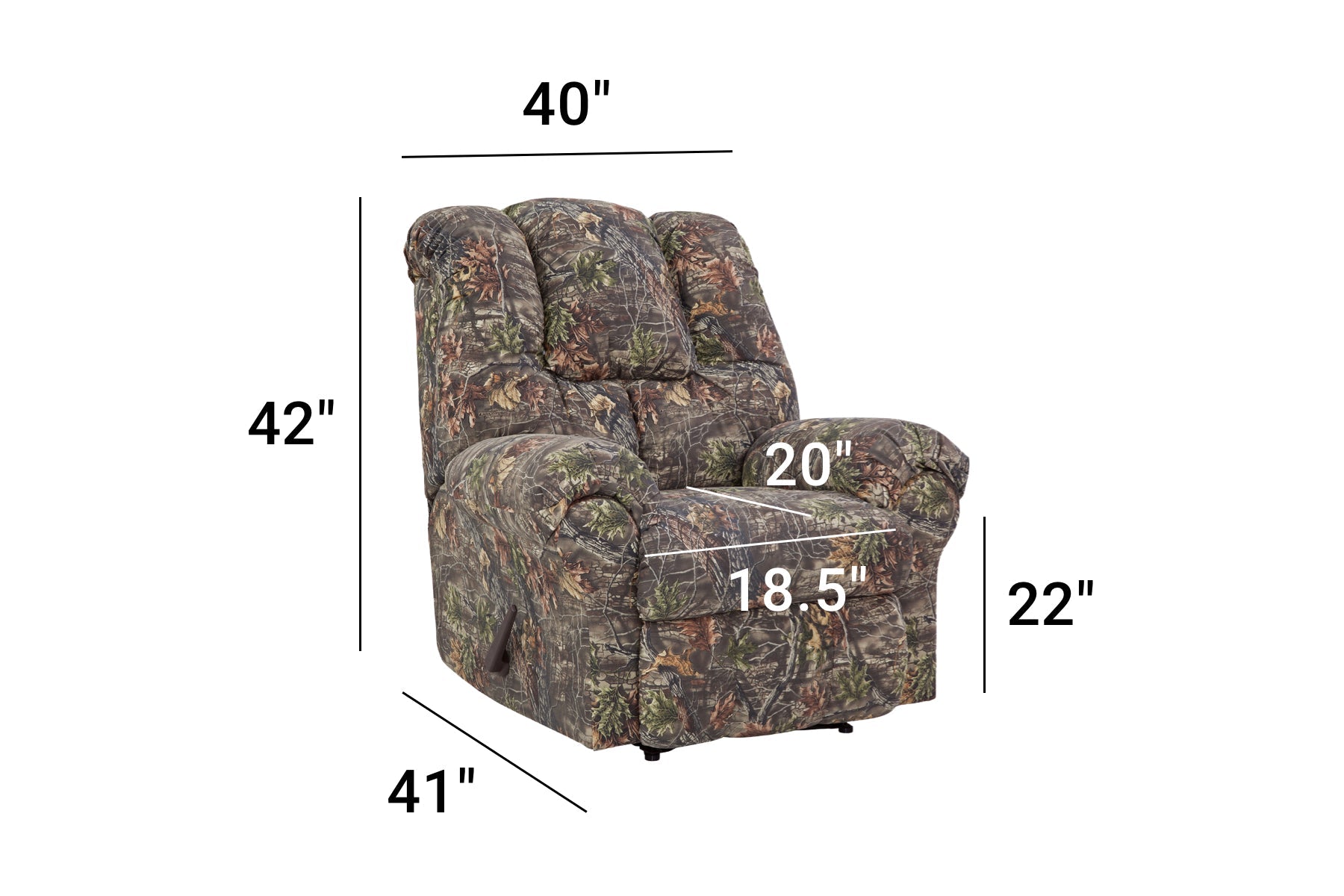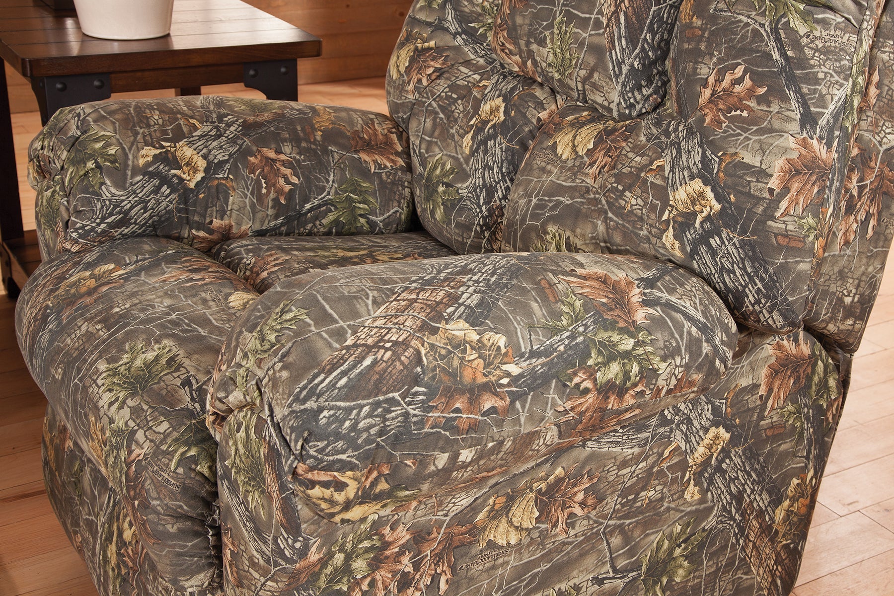 Embody your love for the outdoors with this recliner from Woodhaven Furniture. The padded arms and fiber filled back provides you with a substantial amount of support and long-lasting comfort. Whether you are coming in from the great outdoors or coming home from a long day at work you can count on a cozy and comfy place to unwind. Woodhaven Furniture is proudly built in America and represents comfort, strength, and style. Our frame construction utilizes sustainably sourced genuine hardwoods and engineered laminate panels. The seating system features heavy gauge sinuous wire with “no-squeak” connections, and the cushions consist of high-density foam for durability and comfort.