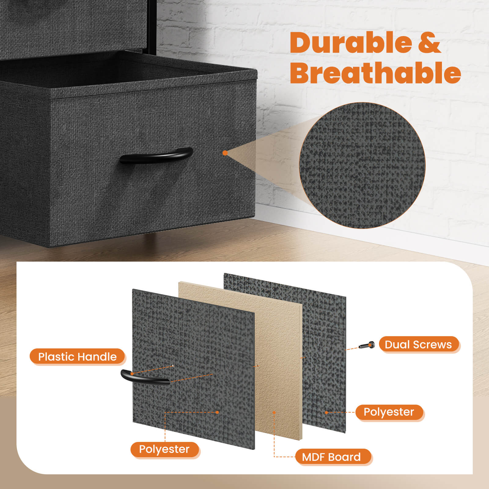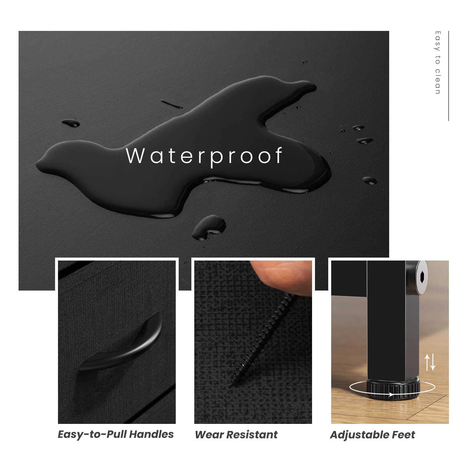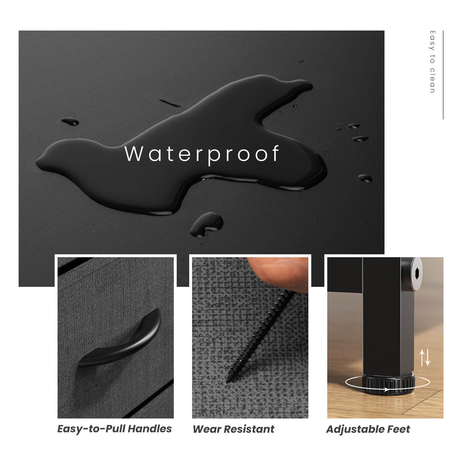 - 【Solid and Stable】Use a thick metal frame to keep the fabric dresser stable, with 4 adjustable feet to protect your floor from scratches, and you can adjust the balance of the chest of drawers in small areas. An auxiliary feature can be added if the dresser is attached to the wall, as it prevents uneven floors or tilting caused by children climbing.