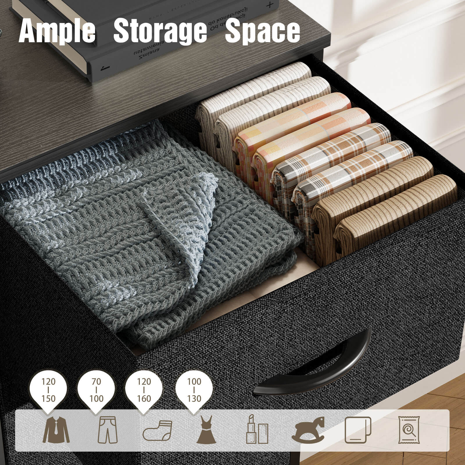 - 【Versatile Design】Elevate any room with our fabric dresser's versatile design. Whether it's your bedroom, living room, office, or even your child's room, this dresser seamlessly integrates into any space. Its timeless aesthetic complements a wide range of decor styles, ensuring it suits various settings with ease.