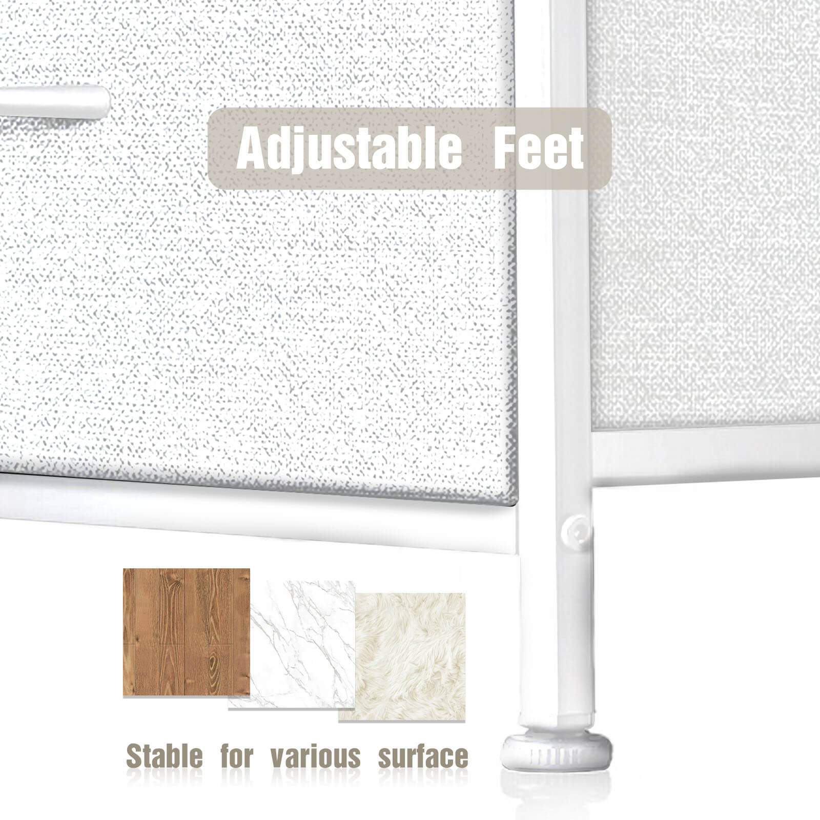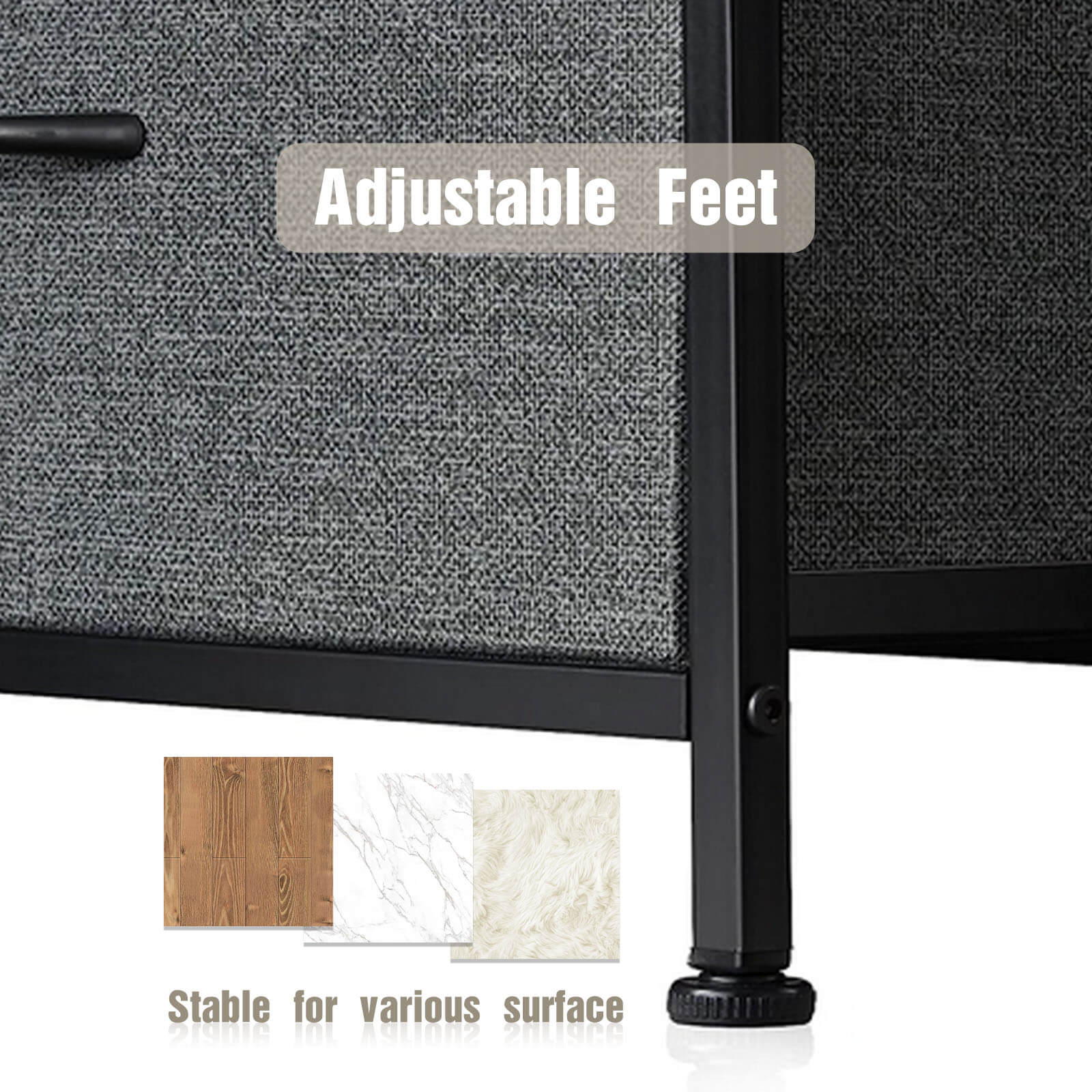 - 【Sturdy Durability】Built to withstand the test of time, our dresser boasts a robust construction. The metal frame provides exceptional stability, while the X-shaped support bars reinforce its durability. Rest assured, this dresser is designed to remain steadfast, maintaining its integrity through years of use. Moreover, its adjustable feet offer the added advantage of accommodating various surfaces, ensuring stability on any floor type.