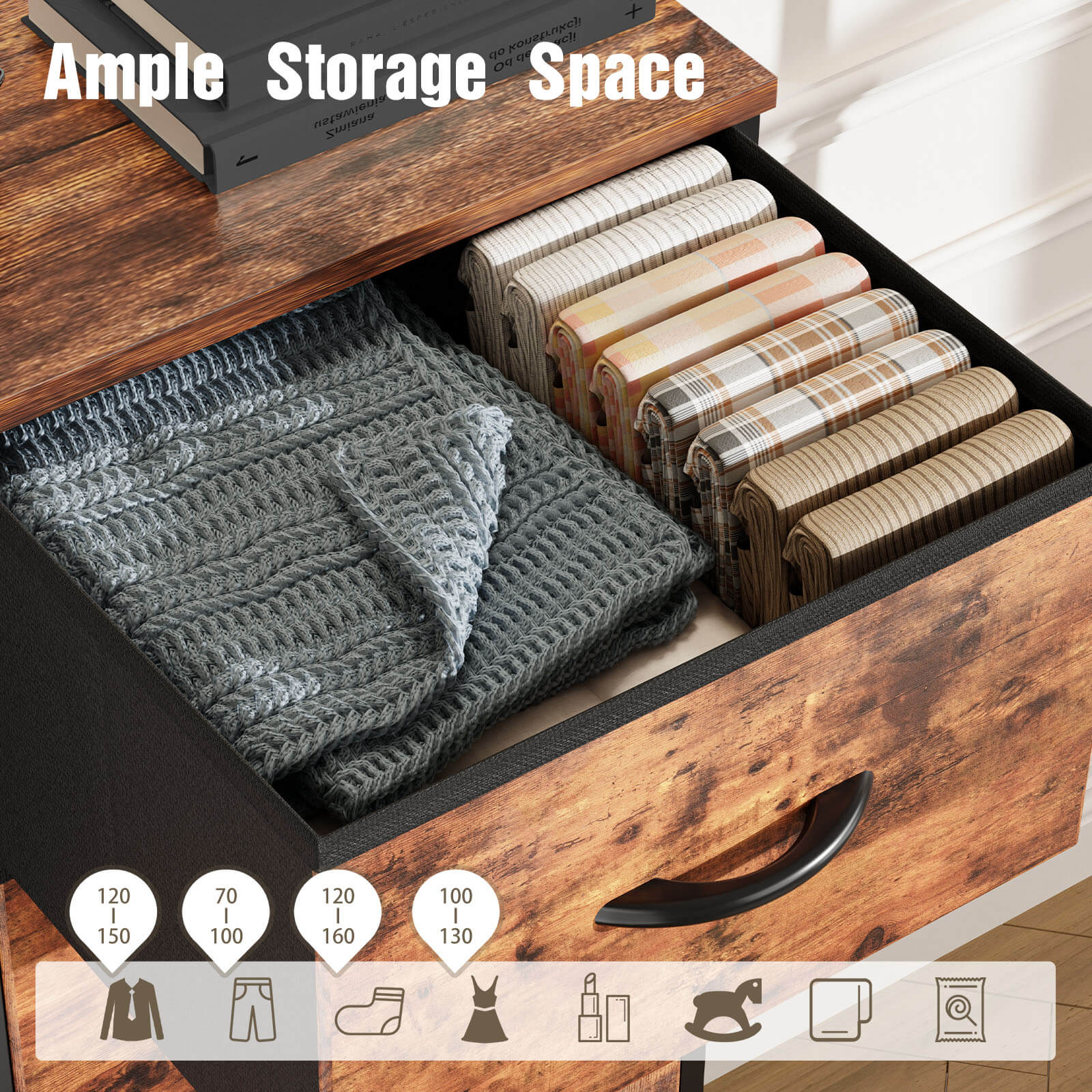 - 【Spacious Storage】Experience unparalleled storage capacity with our 10 drawer dressers. Each drawer offers the freedom to neatly organize your wardrobe. Fit 12-15 tops, or 7-10 pants, or 12-16 pairs of socks, or 10-13 skirts in each drawer. Say goodbye to clutter and hello to effortless organization.