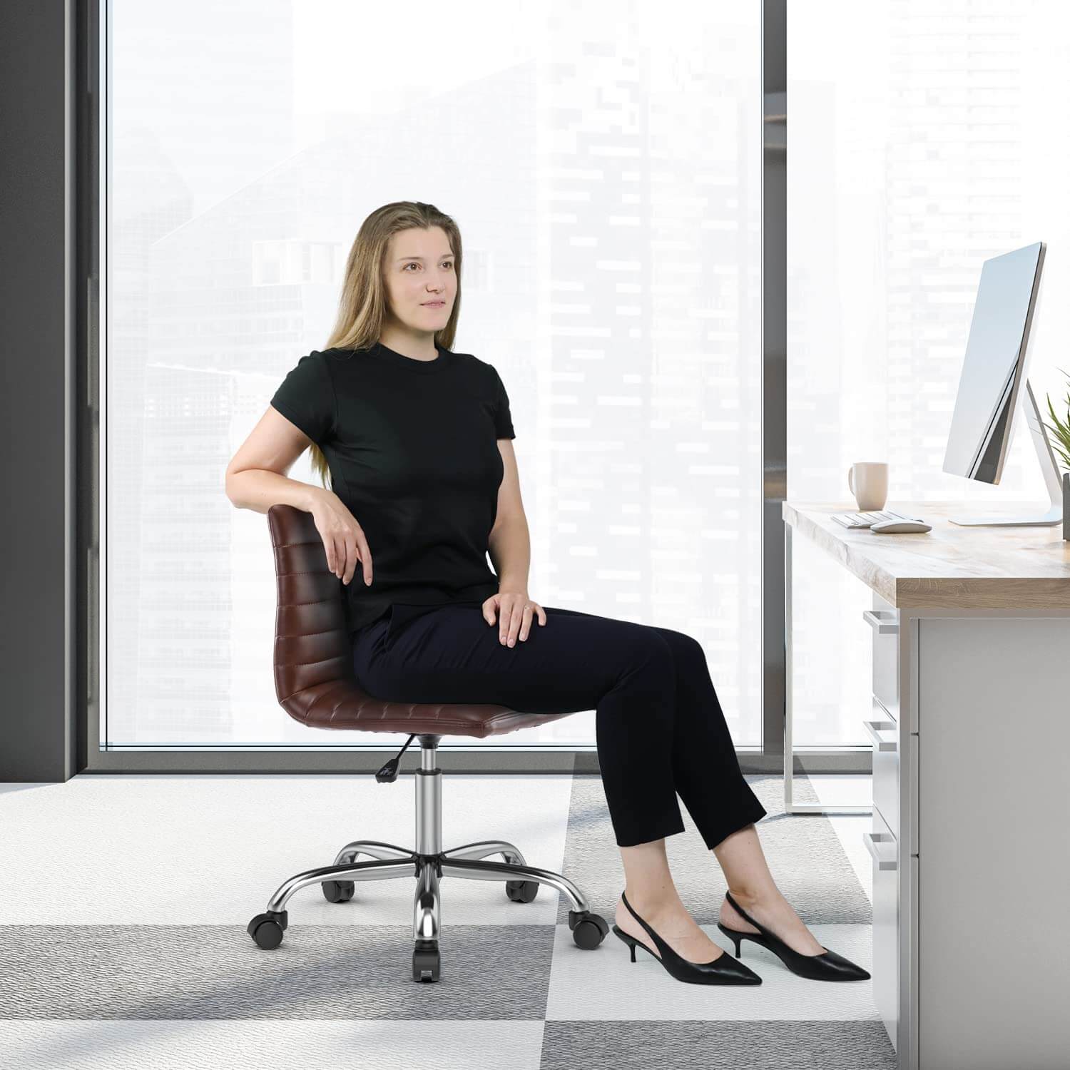 Leather Swivel Armless Mid Back Ribbed Office Chair for Adult Child, Height adjustable Vanity Chair