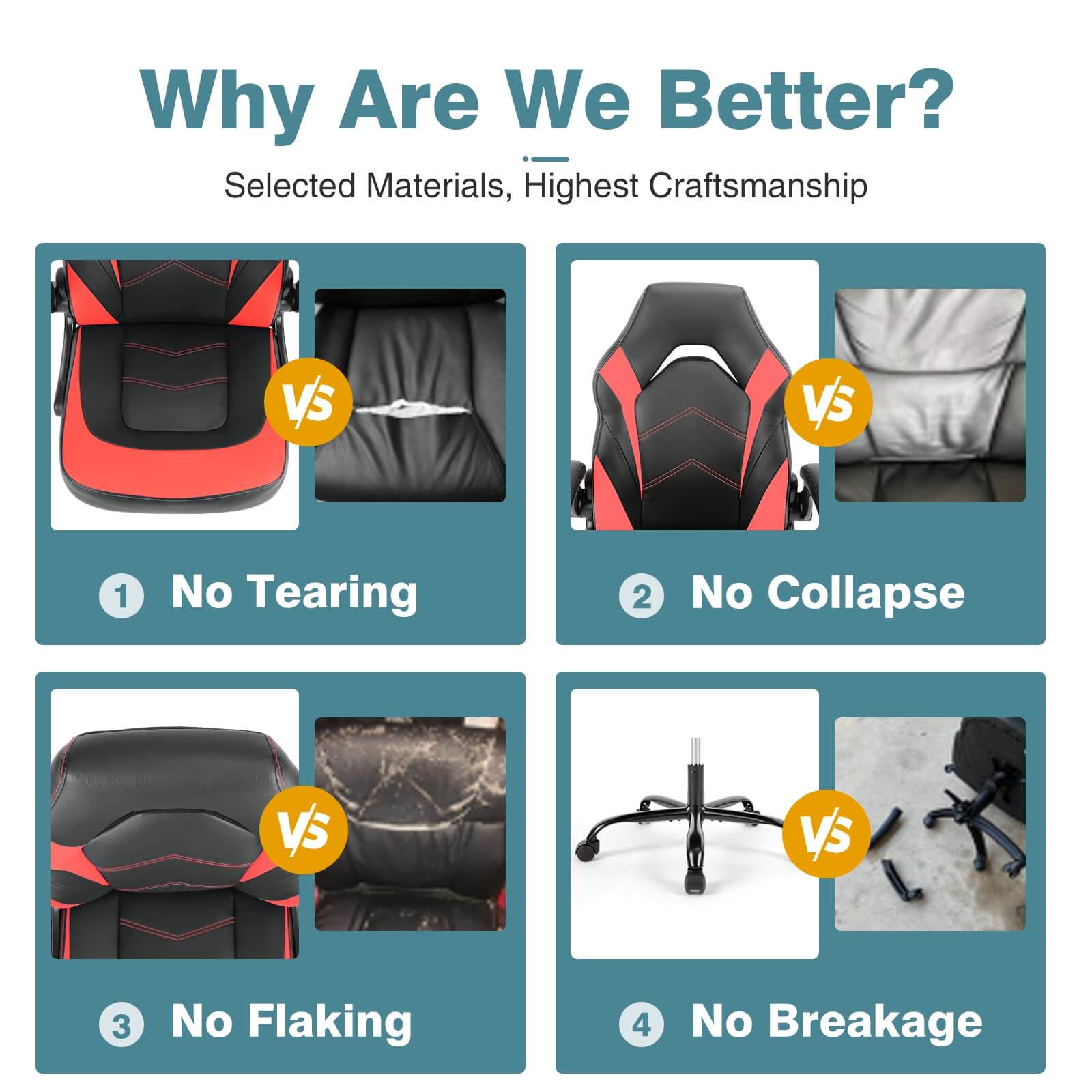 - 【Unique Design】 - The gaming chair is made of PU leather, comfortable and breathable, with multi-line elements and a hollowed-out back to highlight the design. There are 90°flip armrests to support the arms and back support. Upgraded cushion for more fullness and comfort.