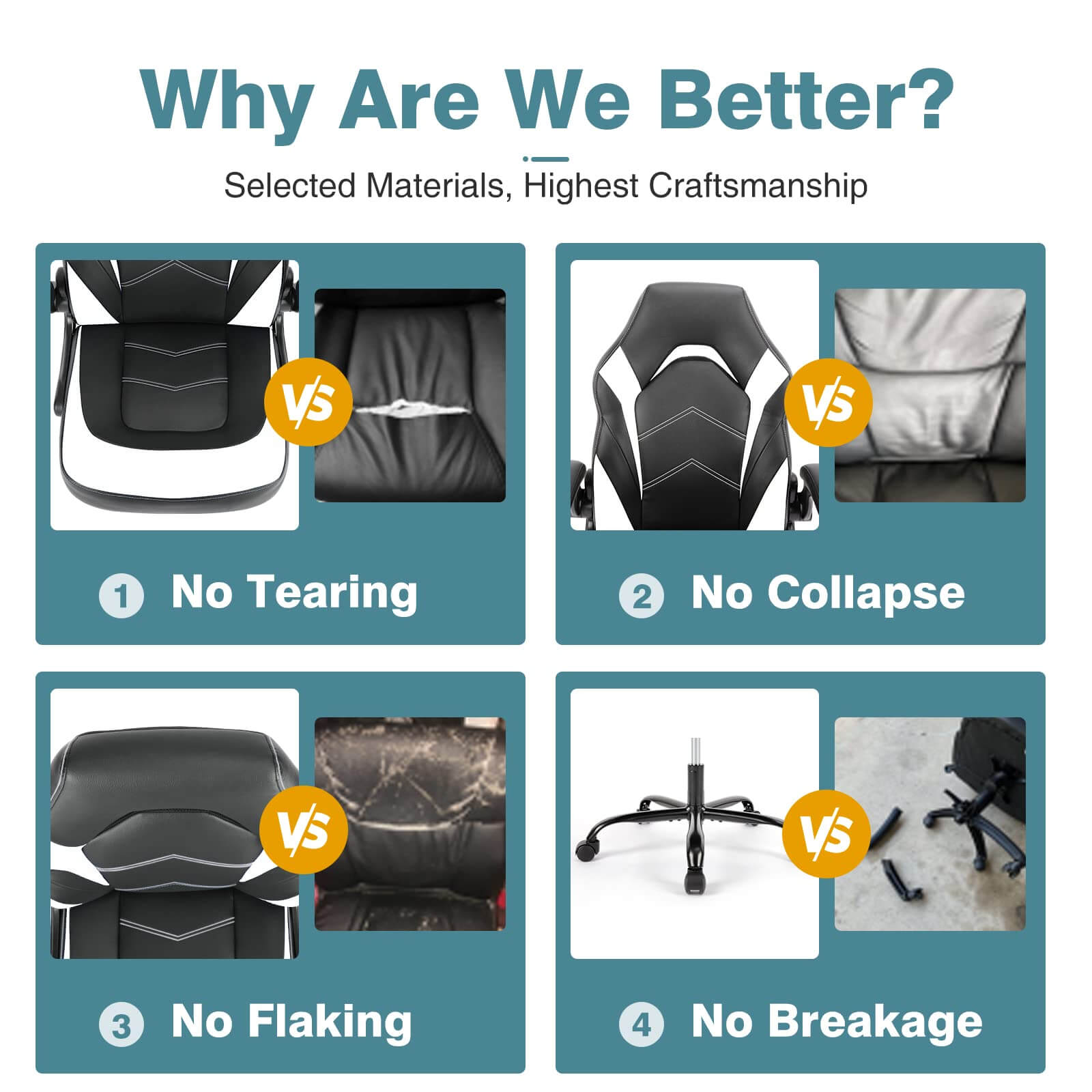 - 【Selected Material】 - Computer chair using high-quality PU leather, with dirt-resistant, wear-resistant, easy to clean, skin-friendly non-irritating characteristics, and easy to take care of. 1.8mm thick steel frame, more sturdy and stable.