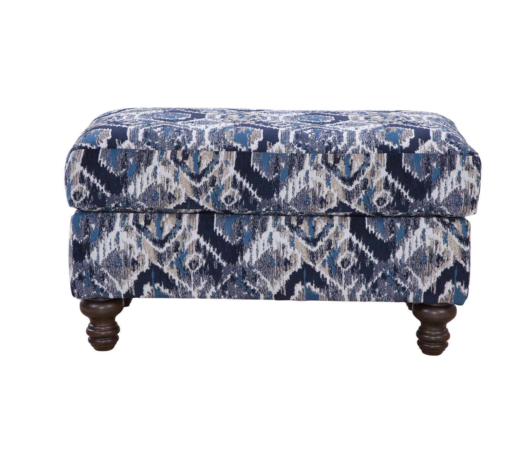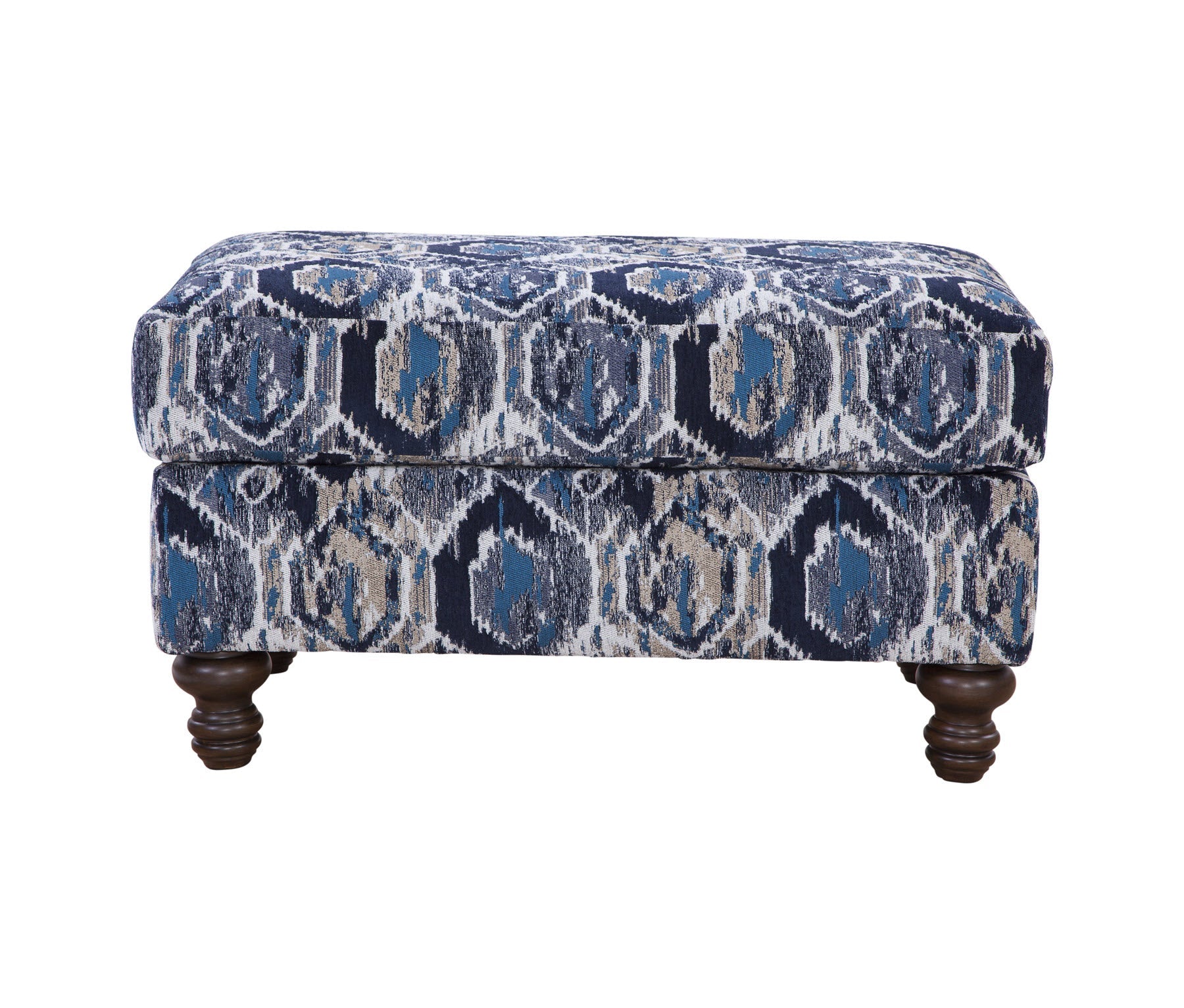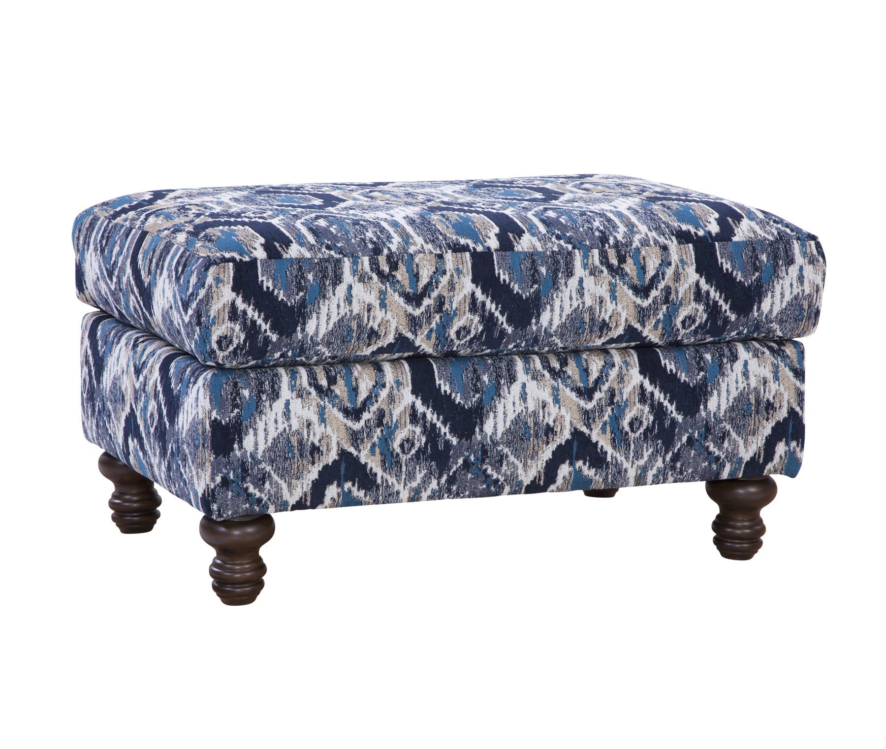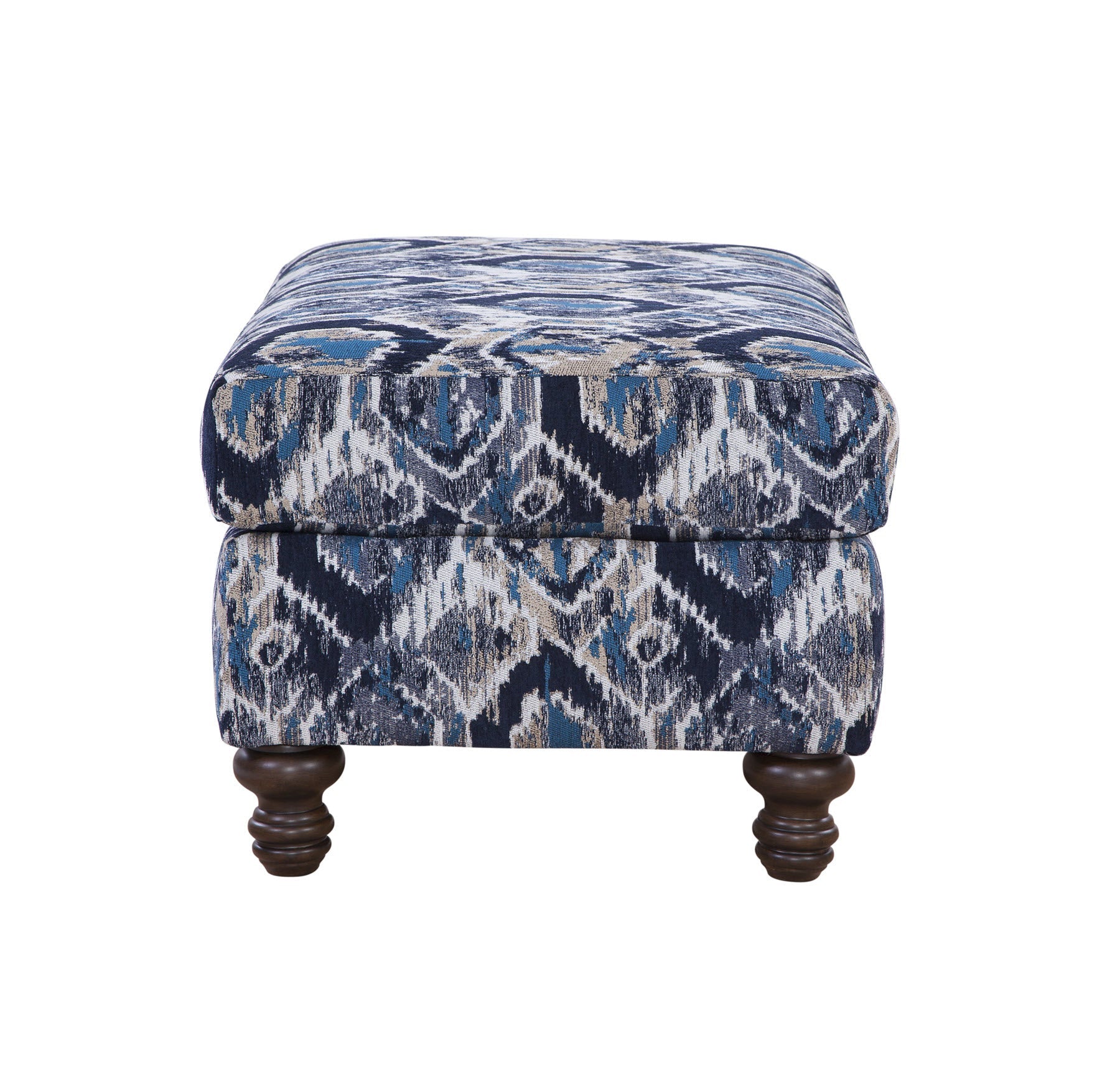 Add a transitional, stunning, bold blue patterned ottoman for functionality. A great pop of color to compliment the coordinating chair. This ottoman is perfect for resting your feet, placing a drink, or simply sitting on comfortably.